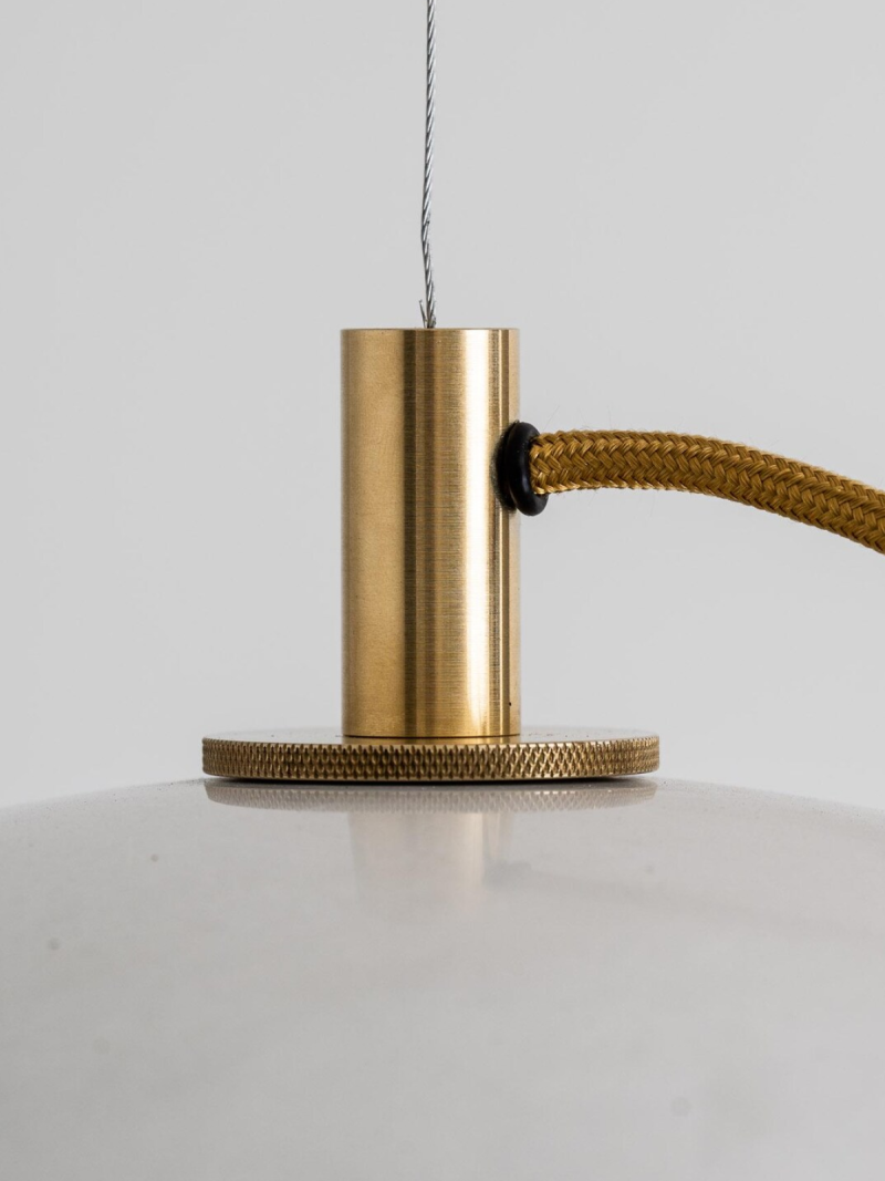 The innovative SOWA STONE concrete is still real concrete with a rough and eloquent texture character. But thanks to its special composition and several manufacturing secrets, it is lighter and more durable, so it can be used to make lamps with a wall thickness of only a few millimeters. A lamp with a diameter of half a meter weighs only a few kilograms, so it can be safely hung in thin, almost invisible threads, allowing you to create a feeling of flight in the interior.